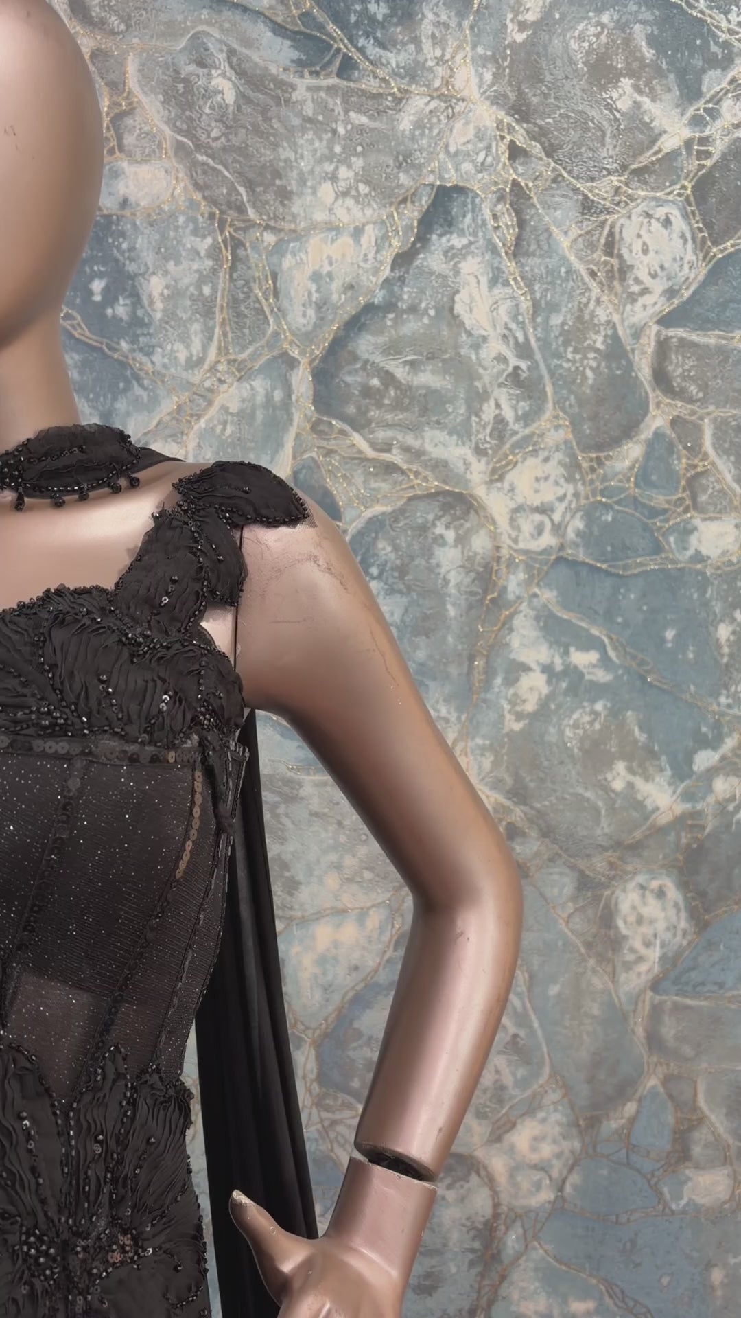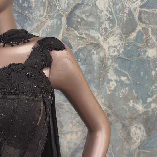 Black Embroidered Lehenga Set with Cape – Luxury Party & Evening Wear