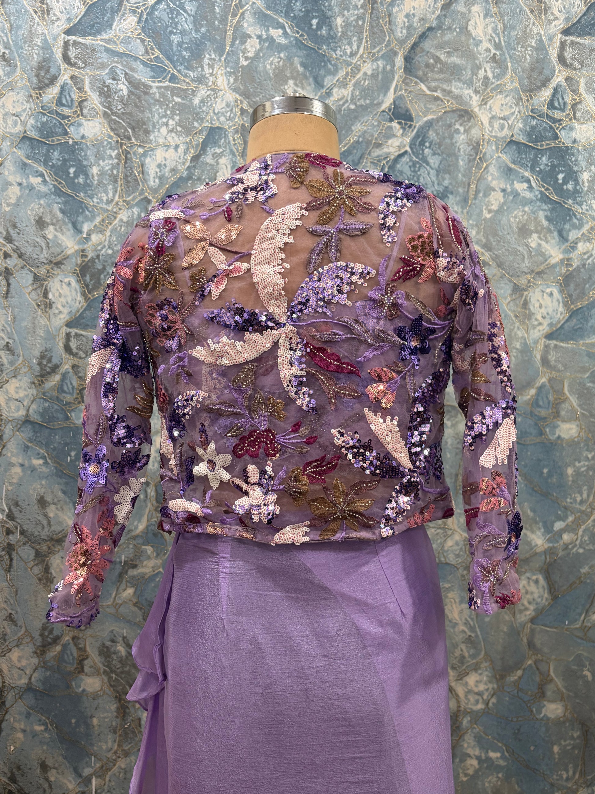 Lavender Pre-Draped Saree Set with Embroidered Jacket & Blouse