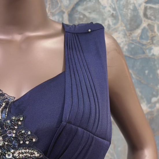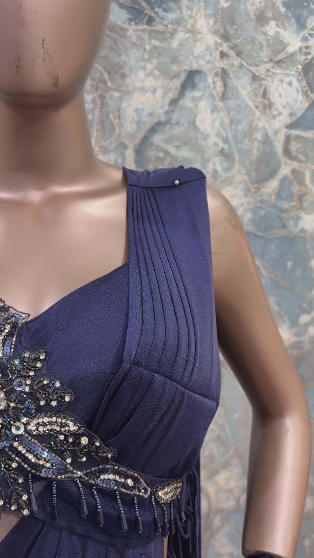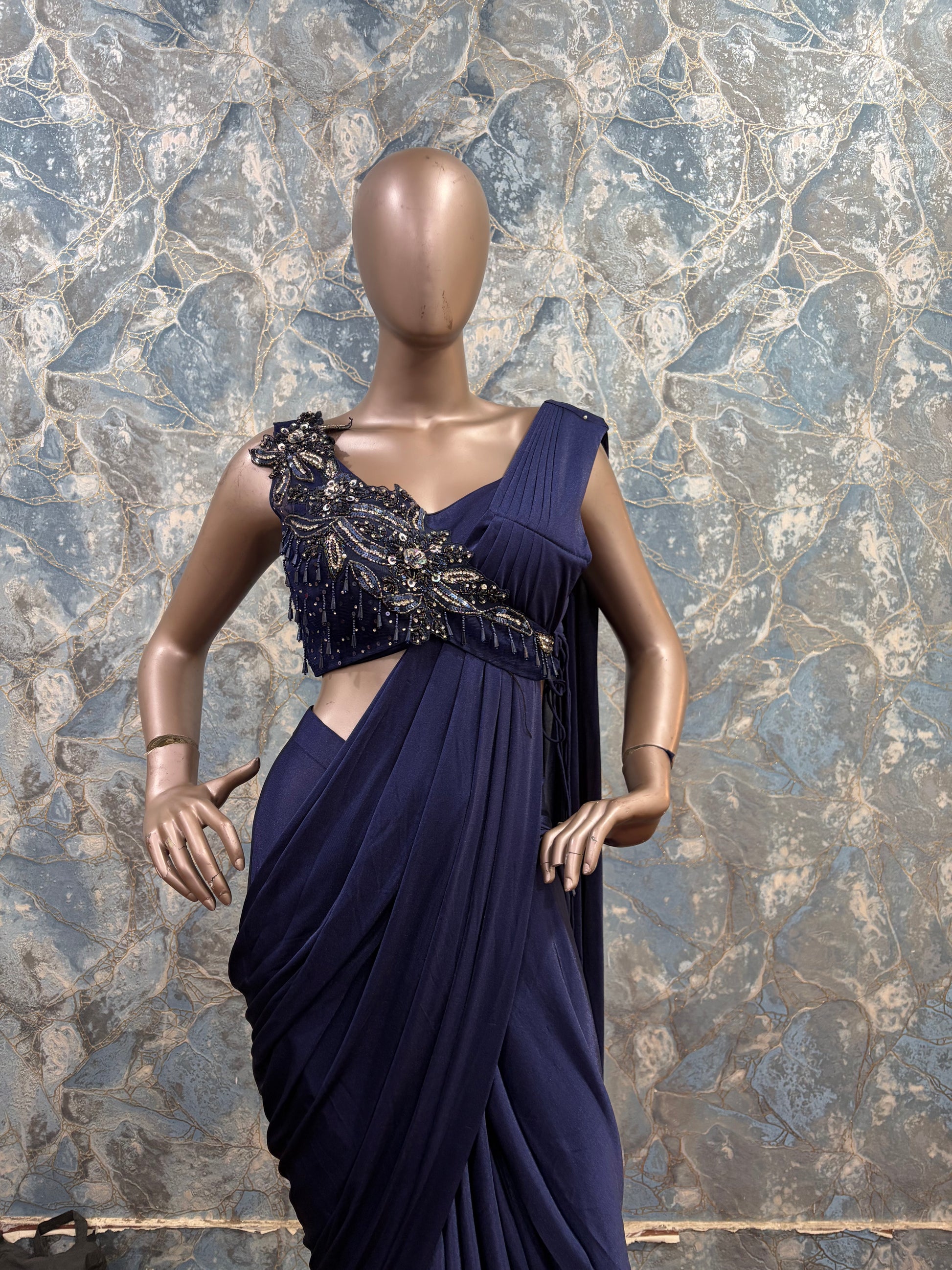 Navy Blue Embellished Pre-Draped Saree Set (Style No. 8239)