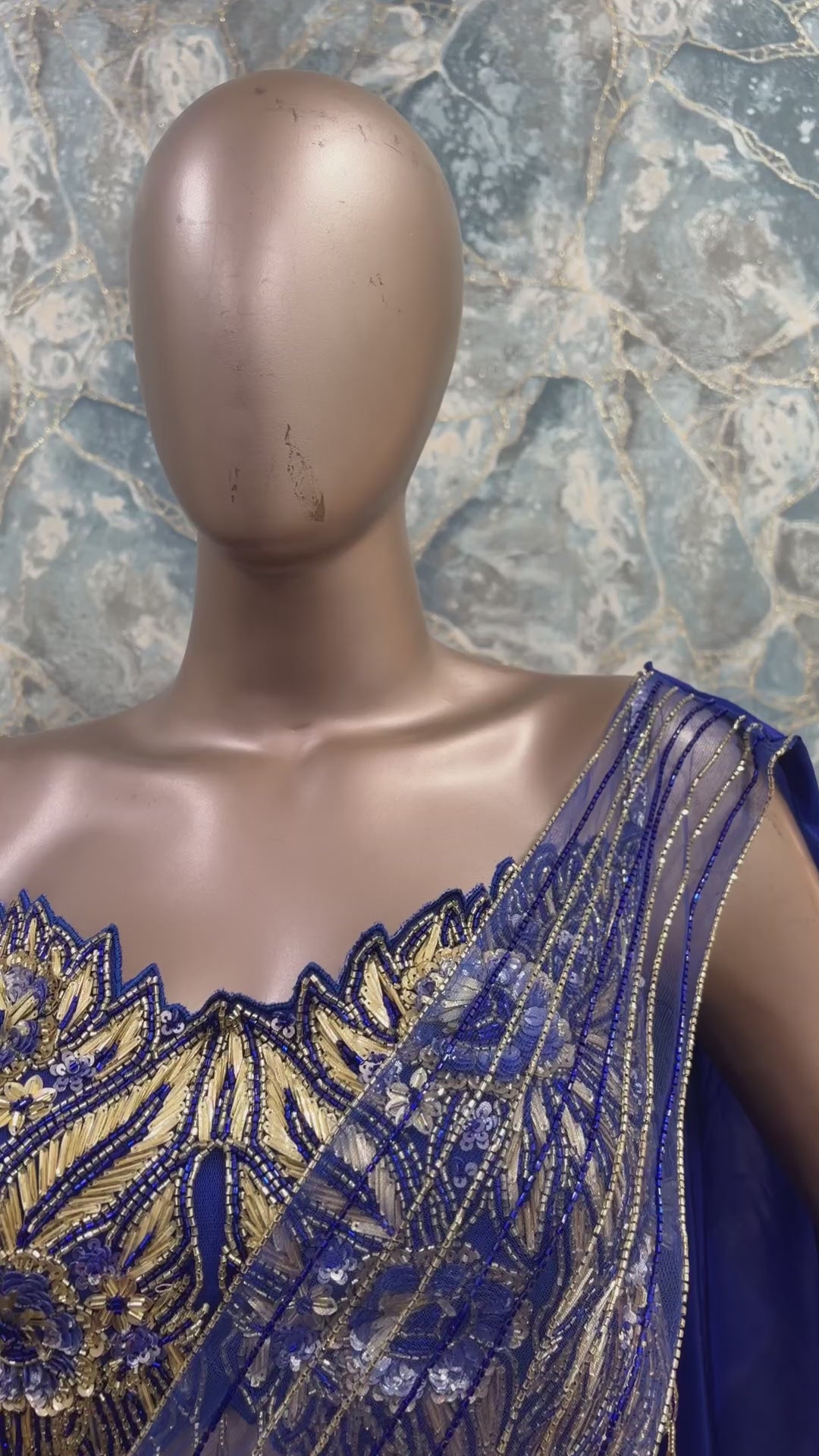 The sleeveless embellished bodice is highlighted with intricate sequin and bead embroidery, enhanced by sheer panel detailing for a modern, glamorous touch. The attached dupatta-style drape adds fluidity and elegance, perfectly balancing ethnic charm with a fashion-forward Indo-Western appeal.