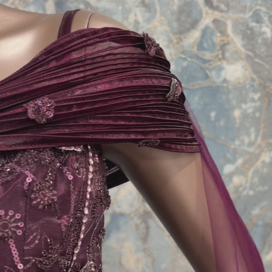 Wine Embroidered Indo-Western Mermaid Set (Style No-8243)